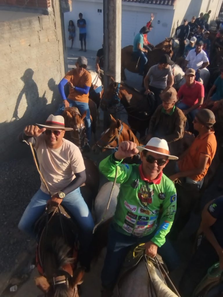 e seus respectivos Carreiros, fizeram um percurso intenso calor em dia ensolarado, onde contou com a resistência de todos os participantes, onde teve desde as crianças de colocar tão quão jovens, adultos e idosos como que em passo de mágica ninguém se quer vou ou ouviu reclamações de alguém tamanha a satisfação de participar de um evento dessa envergadura, onde o principal personagem é a família que se une e se fortalece a cada frase bendita, com união, força, foco e transparência todos uma só junção perfeita, unicamente no pensar da festa, da cultura e da tradição vinda de quase duas décadas, fortalecendo elos onde a vaidade não tem espaço, portanto viver estes abençoados e lindos momentos é simplesmente impagável, pois temos a certeza de estarmos no lugar certo na hora certa, pois é Deus quem guia nosso caminhar que no silêncio e nas ações vamos trilhando um caminho de Luz, Paz, Tranquilidade, Perseverança e Fé, sabendo que temos um comando para o respeito e a reciprocidade que atende por Edson Lopes Cavalcante (Prefeito )e secretário de governo José Félix Júnior ,Esse será nosso caminho com verdade e determinação dando vida e ênfase no que acredito.